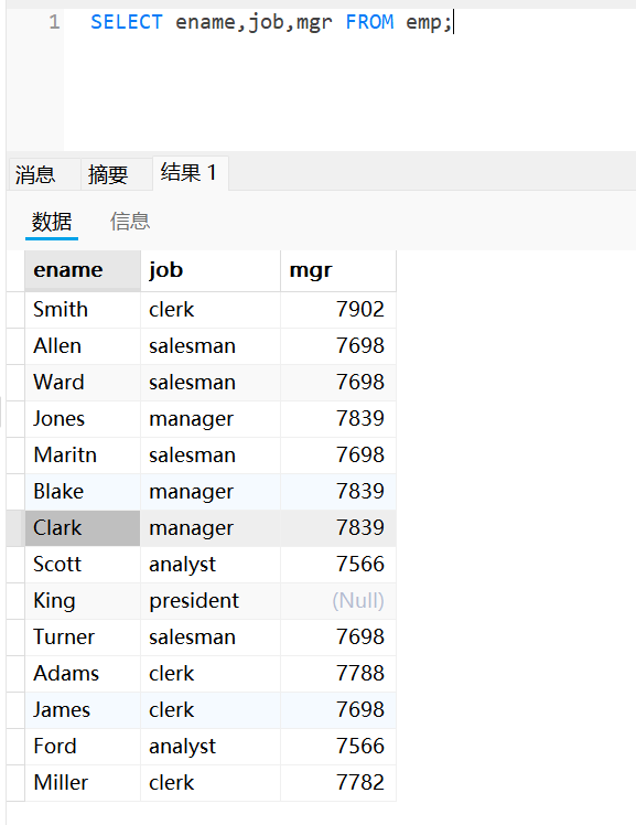 查询指定字段时,只需要在select关键字后面指定要查询的字段即可,字段指定的顺序就是查询结果中字段的显示顺序