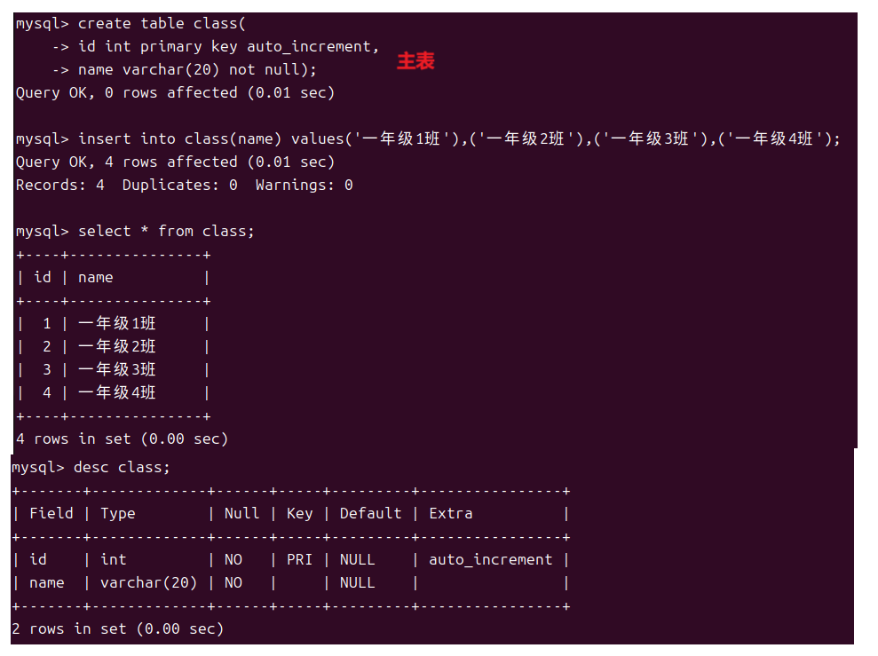 人与人之间是有联系的同理表与表之间也是有联系的例如我是二班的学生那么这里就会有两个表一个为班级表一个是二班的成员表。那么这两个表不就形成了一种主从关系,主表是班级表而从表就是各班的成员表也可以说从表是对主表中对应内容的扩展。所以主表和从表中可以通过两表中各自的一列建立联系就像班级表中的班级编号和成员表中的班级编号。