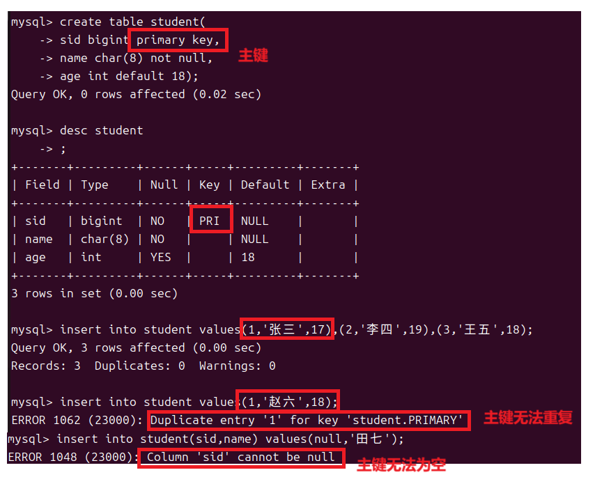 对于一个表来说我们有时候对于存储的数据我们是有轻重之分的,有些数据是这个表中最重要的数据例如学生表中的学号,即使其他的数据都为空工作人员也可以通过学号来找到一个学生。有些数据的存在又是比较无所谓的就像学生表中学生的爱好,这些数据就算不存在也不会影响什么。所以这些重要的数据我们需要来特别关注不能让它重复也不能为空,这就是主键。