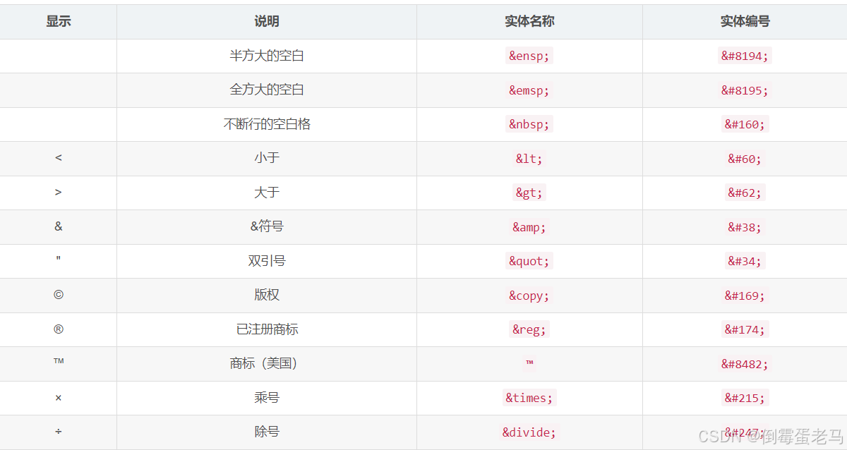 在网页上显示的一些特殊符号,称为字符实体,也叫符号实体
