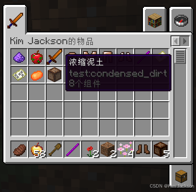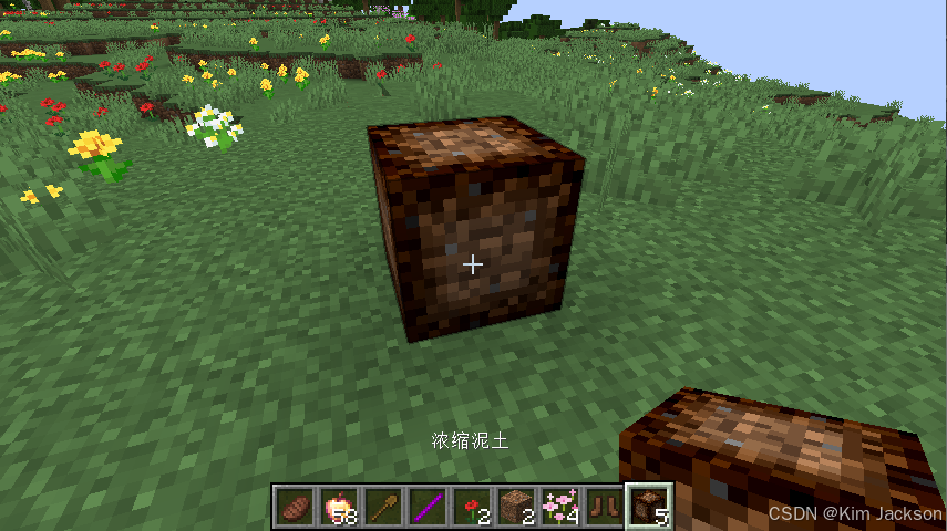 现在,我们打开游戏测试一下“浓缩泥土”方块的各种功能。