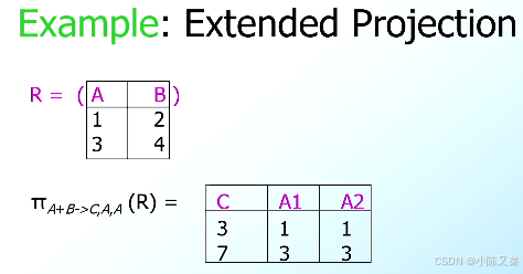 R1 is constructed by looking at each tuple of R2, extracting the attributes on list L, in the order specified, and creating from those components a tuple for R1.(查看R2的属性列表,然后提取出L属性列表中的属性,然后按照特定顺序创建R1的元组)
