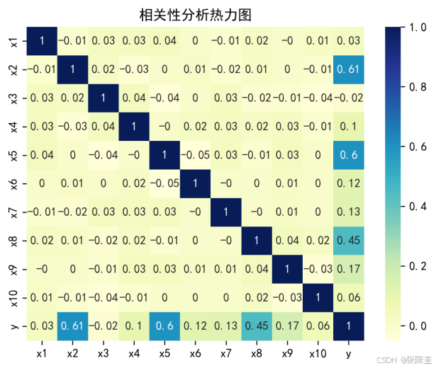 从上图中可以看到,数值越大相关性越强,正值是正相关、负值是负相关。