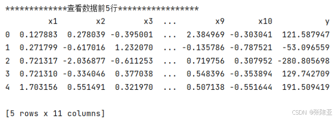使用Pandas工具的head()方法查看前五行数据: