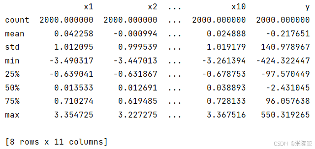 从上图可以看到,总共有11个变量,数据中无缺失值,共2000条数据。
