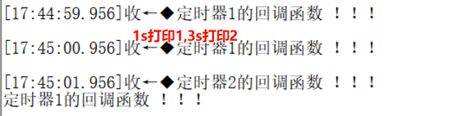 软件定时器1每1s周期打印,软件定时器2在3s时,打印1次
