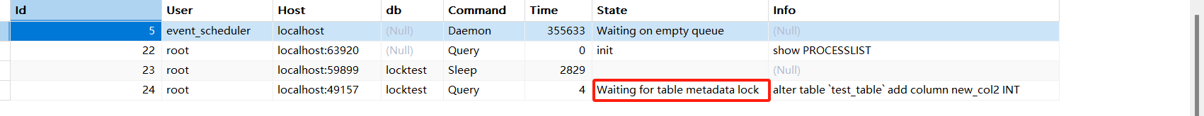 锁表是我们在生产环境十分常见的问题之一,解决问题前需要先了解锁表产生的原因以找到解决方案,并制定方案以预防锁表,本文接下来会分别模拟元数据锁表(MDL锁)、行锁升级为表锁、死锁、**显示锁表
