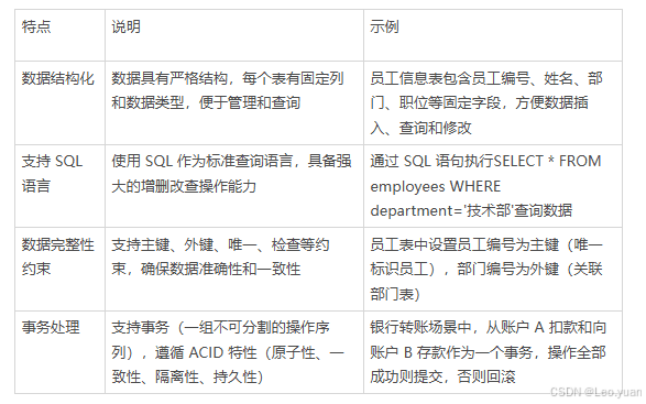 关系型数据库是基于关系模型的数据库,它将数据组织成二维表格的形式,每个表格由行和列组成。行代表记录,列代表字段。常见的关系型数据库有 MySQL、Oracle、SQL Server 等。关系型数据库具有严格的结构和规则,数据之间通过关系进行关联。例如,在一个电商数据库中,可以有客户表、订单表和商品表,通过客户 ID 和订单 ID 等字段可以建立起客户、订单和商品之间的关系。