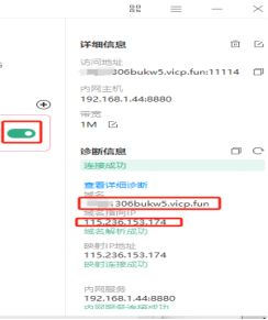 外网域名是自动分配的(自己想自定义要钱哈哈),外网端口也是选动态端口(静态要钱哈哈),内网主机就是自己的IP,内网端口也是自己设置的端口
