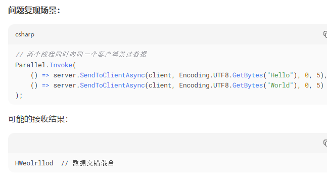 private readonly ConcurrentDictionary<TcpClient, SemaphoreSlim> clientLocks = new();