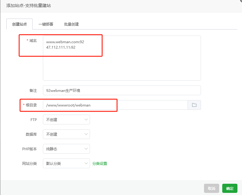 - 新建一个站点,php版本选择纯净态即可,反正都是用不上的,域名填写你申请得到的域名,