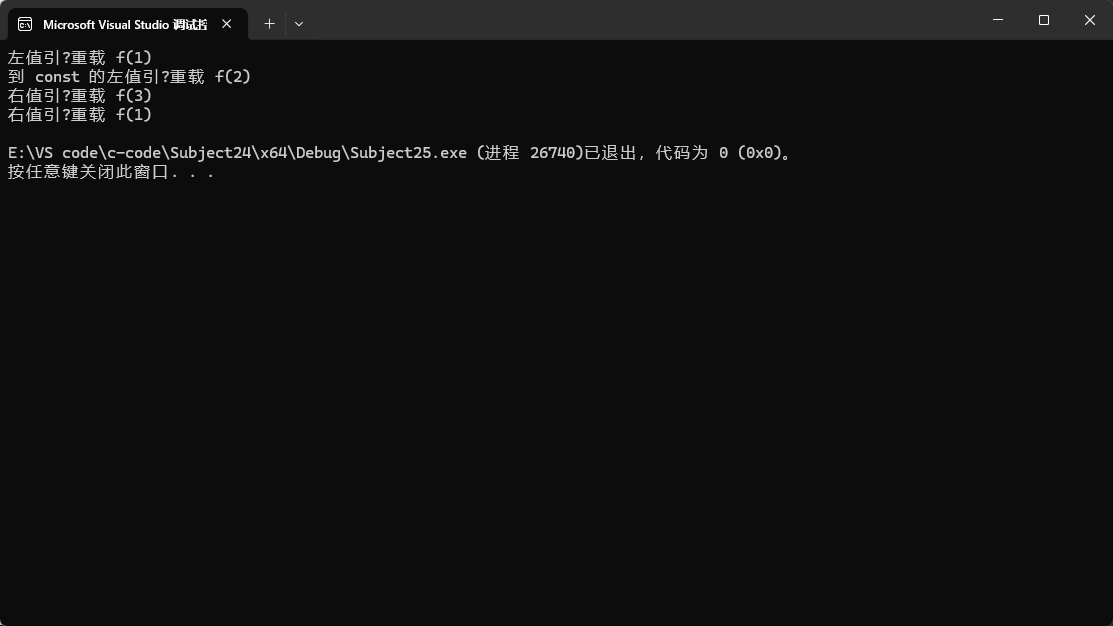 可以看出结果一个调用了左值引用的函数,一个调用了右值引用的函数。