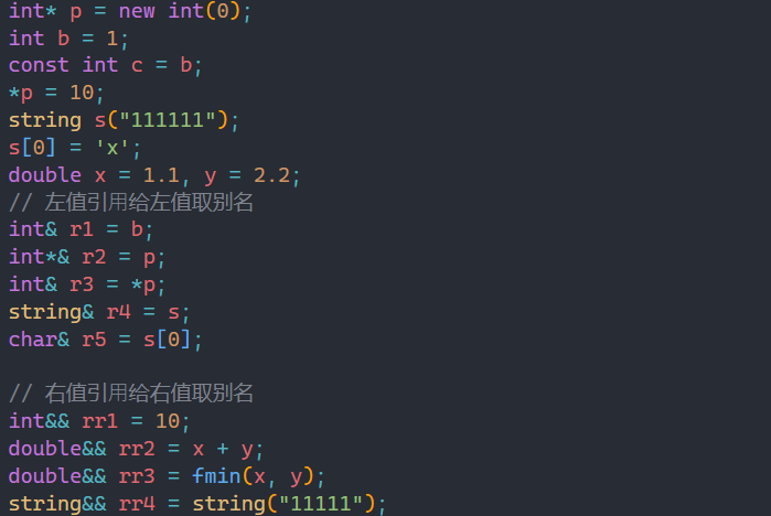 Type& r1 = x; Type&& rr1 = y;