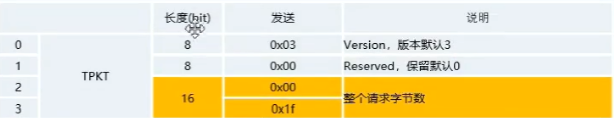 ■ TPKT(第五层:会话层) 总共占4个字节