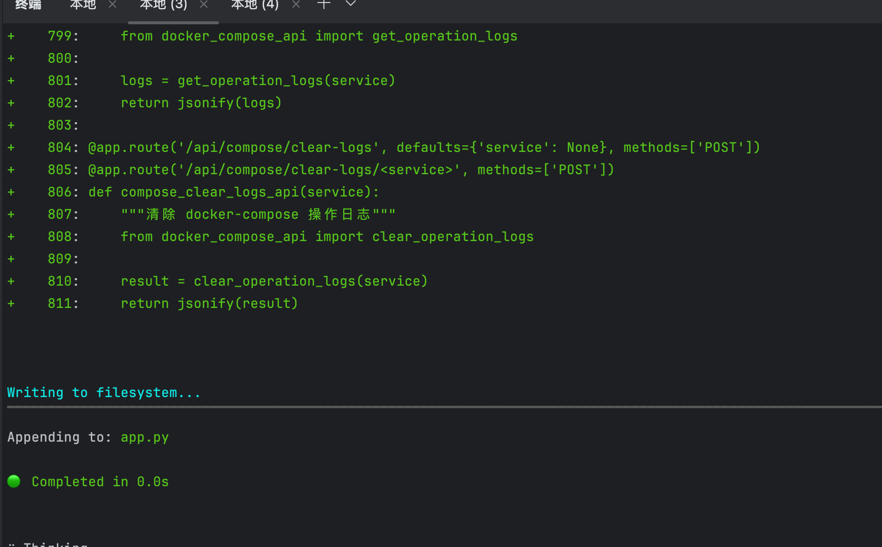 看日志也很方便,也无需再使用 docker logs,这样调试容器的时候就很方便了。