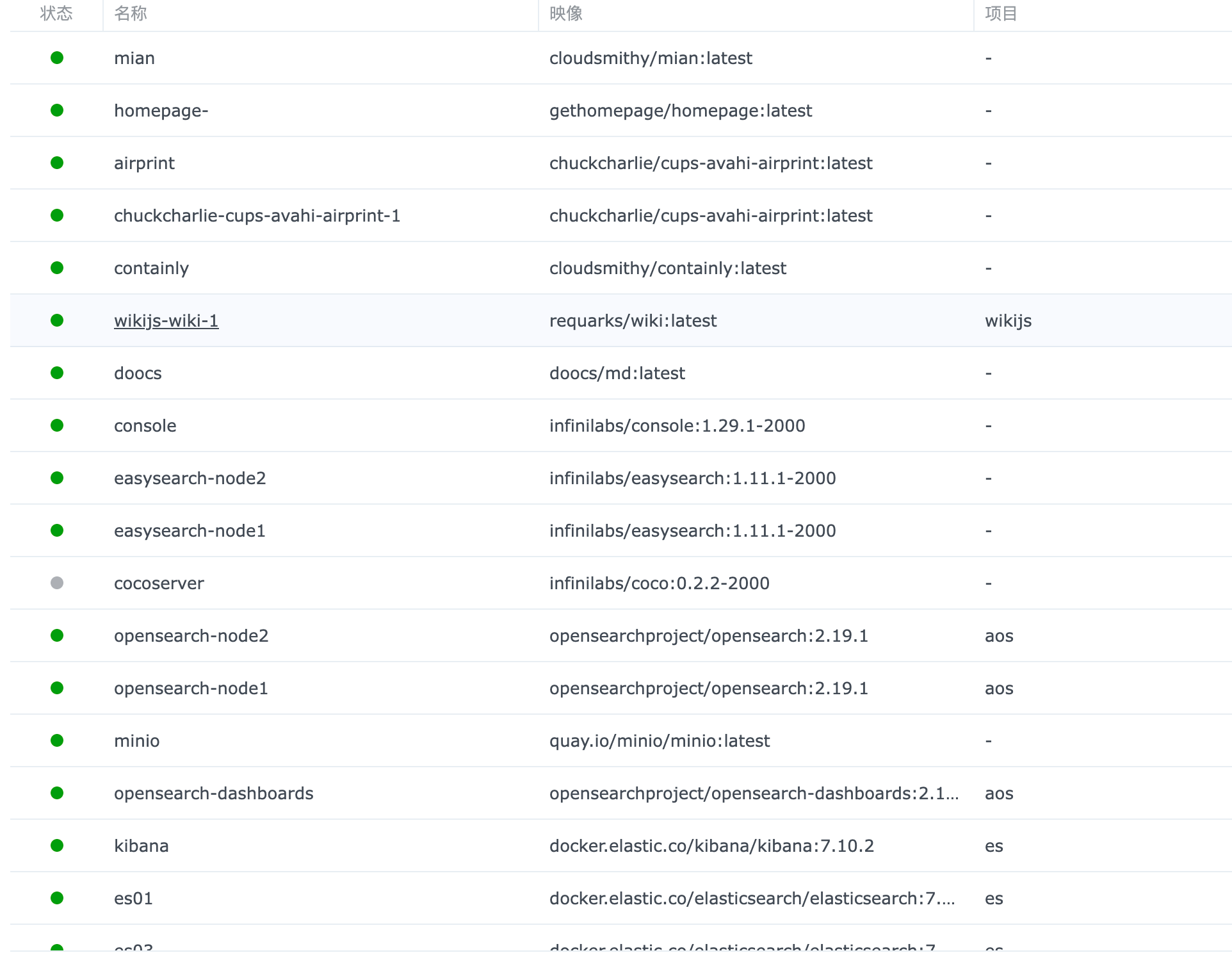 默认情况下,每个容器卡片会显示容器的网桥信息、端口映射和URL。默认使用HTTP协议,鼠标悬停时,会在右侧显示操作按钮。通过点击这些按钮,操作会被保留,再次点击会隐藏,这样子就整个比较美观。