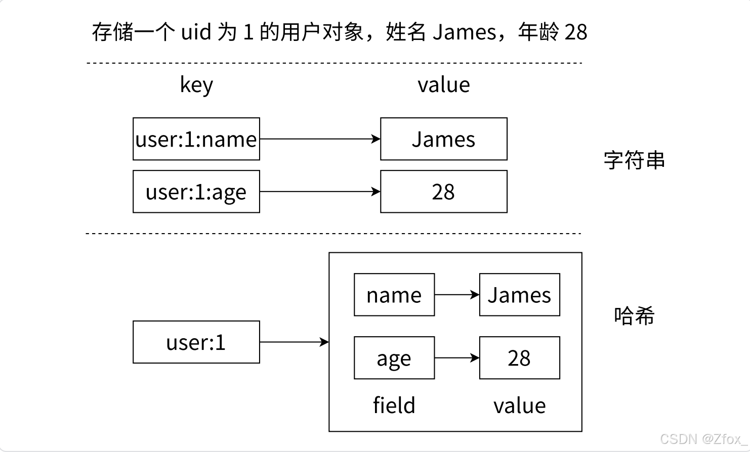 图2-15字符串和哈希类型对⽐