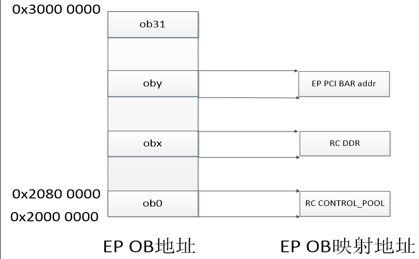 即,EP访问RC:EP配置outbound地址,对应RC的DDR地址。EP访问特定的地址,会产生一个事务,访问RC侧的DDR地址。