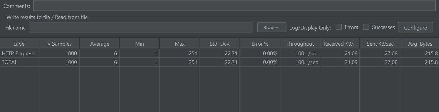 可以发现,在1000个线程并发的请况下,我的吞吐量只有100/sec,这是极低的