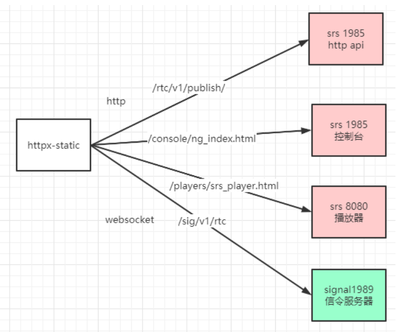 /rtc/v1/publish)和 WebSocket(如/sig/v1/rtc)请求,让前端只需访问一个域名,简化配置。