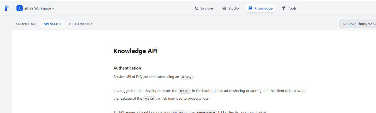 尝试修改dify的前端源代码,在知识库增加一个tab页"HELLO WORLD",完成后的效果如下