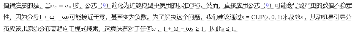 CFG策略的比较 如图10b所示,Zhai等人(2024)中使用的原始策略表现出明显的“下降-上升”行为:它在新提出的CFG相似的引导权重下实现了最佳FID,但随后随着您远离该最佳值而迅速下降。即使使用“退火技巧”(Zhai et al., 2024),性能在两种尺度上仍然会急剧下降。相比之下,我们提出的CFG不仅改进了原始策略的最佳点——无需额外技巧——而且更重要的是,在更广泛的引导权重范围内保持了几乎相同的质量,这为调整文本条件生成任务提供了更大的灵活性。