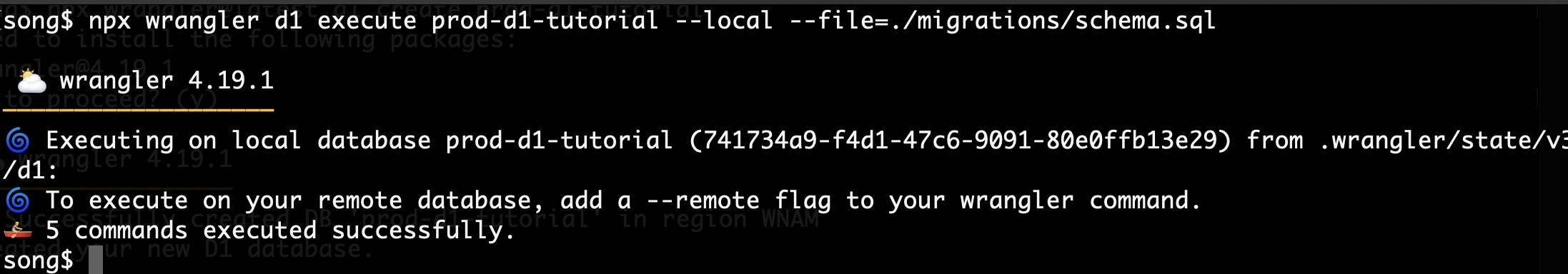 npx wrangler d1 execute prod-d1-tutorial --local --file=./migrations/schema.sql