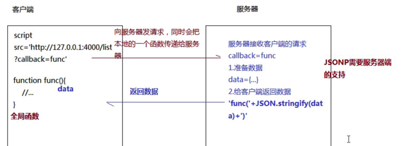 jsonp的原理就是利用<script>标签没有跨域限制,通过<script>标签src属性,将本地的全局函数通过callback传到服务器,服务端将接口返回数据拼凑到callback函数中,返回给客服端