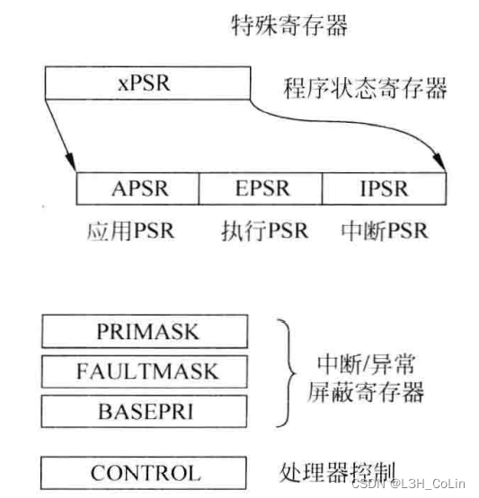 APSR:应用状态寄存器EPSR:执行状态寄存器IPSR:中断状态寄存器