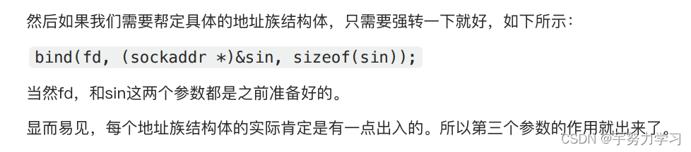 if(bind(fd, (struct sockaddr *)&addr, sizeof(addr)))//成功0/失败-1