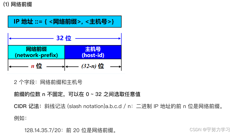 由⼀连串 1 和接着的⼀连串 0 组成,⽽ 1 的个数就是⽹络前缀的⻓度。