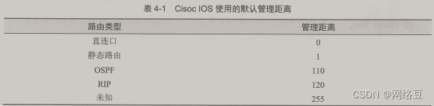 任等级,这个信任等级就称为管理距离。对于两种不同的路由协议到一个目的地的路由信息,路由