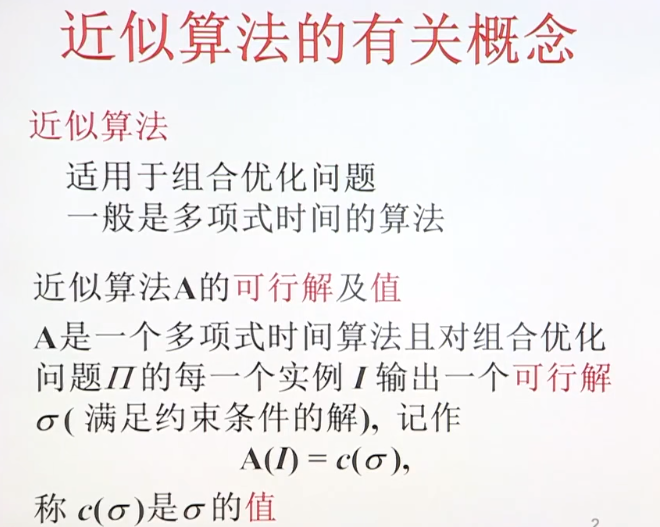 近似算法是指能够在多项式时间内给出优化问题的近似优化解的算法,近似算法不仅可用于近似求解NP-完全问题,也可用于近似求解复杂度较高的P问题。