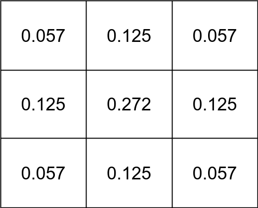 对于卷积核大小为 k = 3 , σ = 0.8 k=3,\sigma=0.8 k=3,σ=0.8的高斯核为: