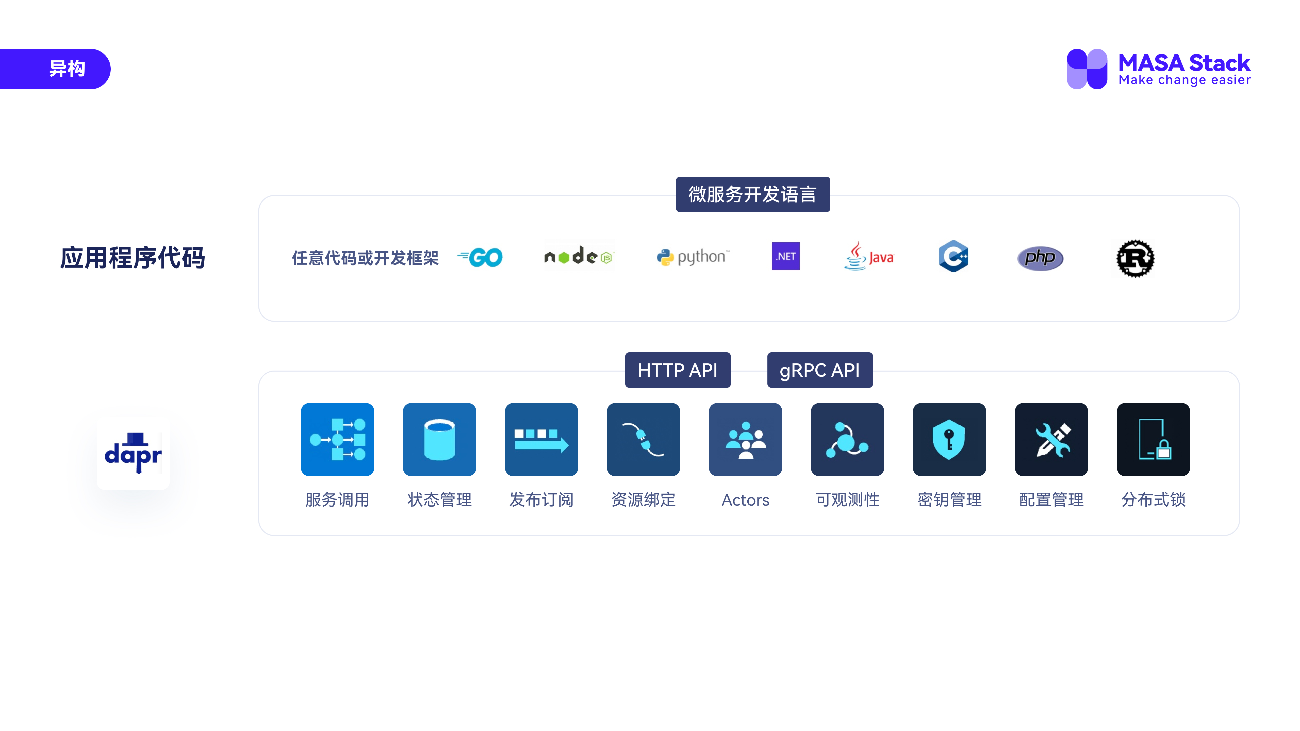 MASA Stack的功能架构底部的内容已经在前面介绍过,那我们来看下上面的内容