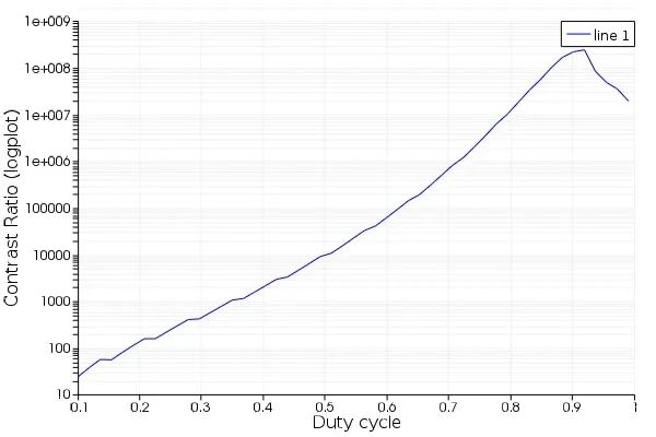 上述结果表明,可以获得1e10^4量级的对比度。然而,由于制造缺陷,这么大的对比度在实践中实现还有困难。