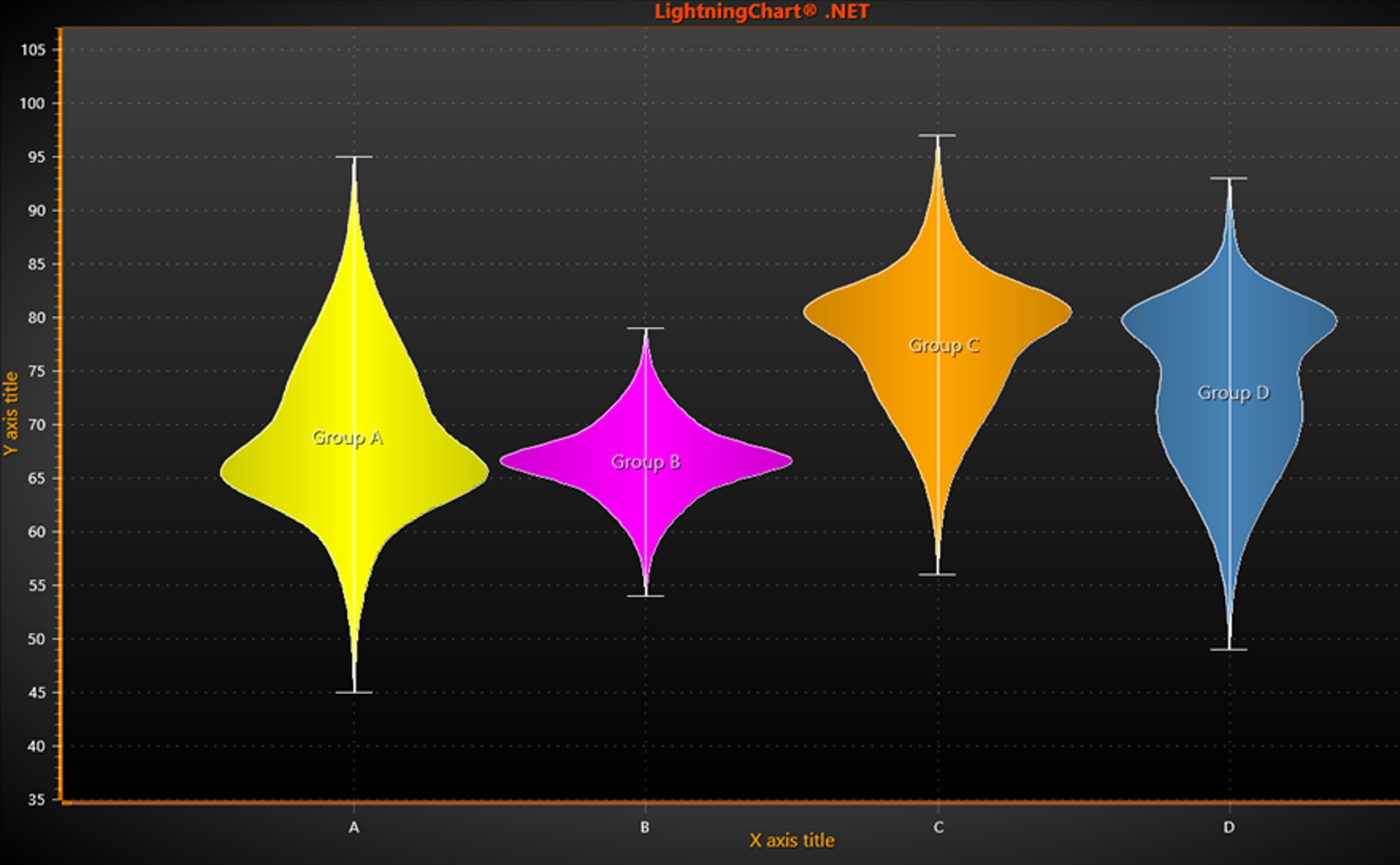 我们添加了一种新的图表类型——小提琴图,一种新的类型是 LightningChart 下的用户/自定义控件。目前仅适用于不可绑定的 WPF。