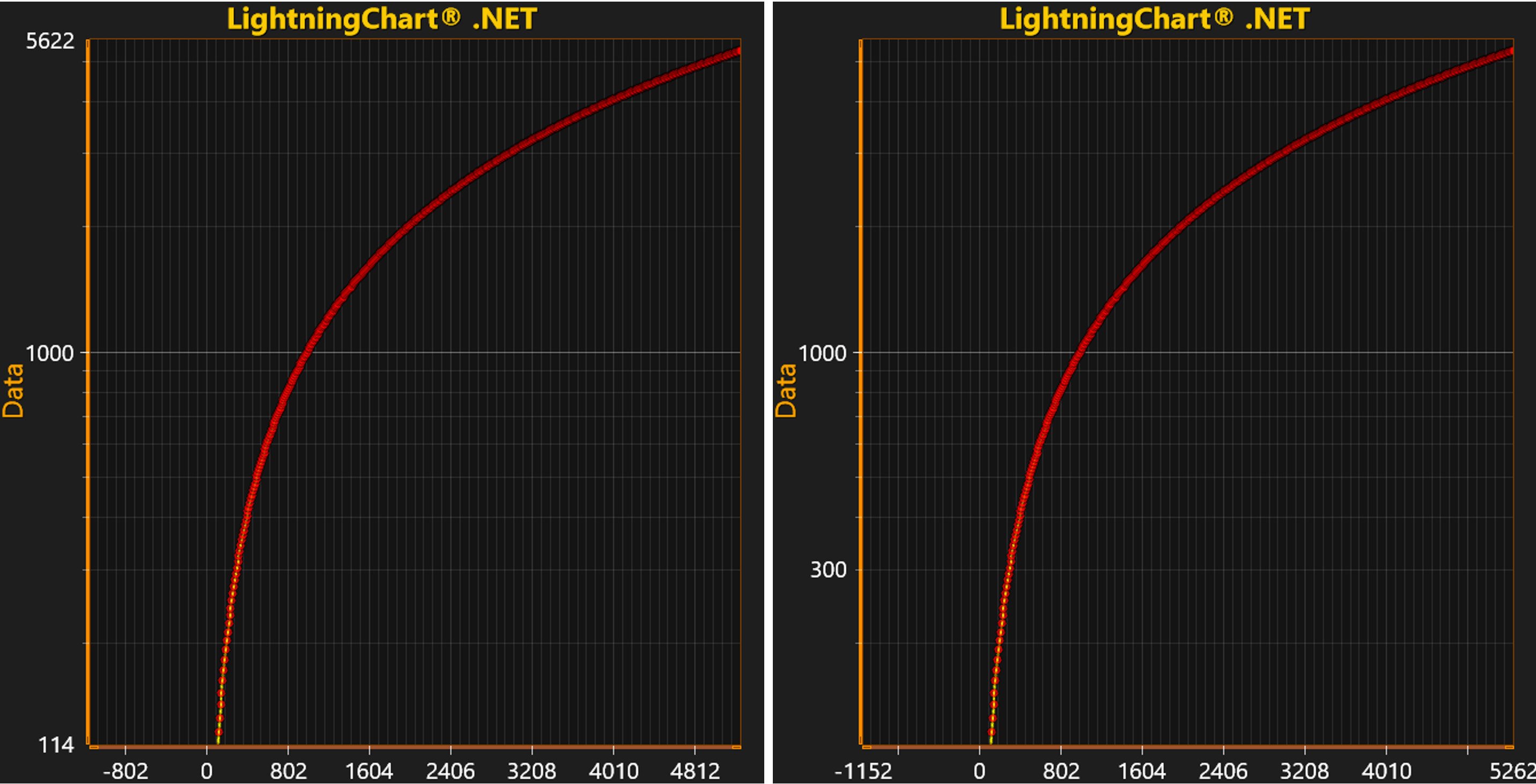 在左侧图表的 Y 轴上,这设置为始终显示结束标签(EndPointLabelsVisible=true,EndPointMajorTickThreshold=-1)。同时,在右侧图表的 Y 轴上,这被配置为除了 1 个主要刻度外还显示一个次要刻度(EndPointLabelsVisible=true,EndPointMajorTickThreshold=1)
