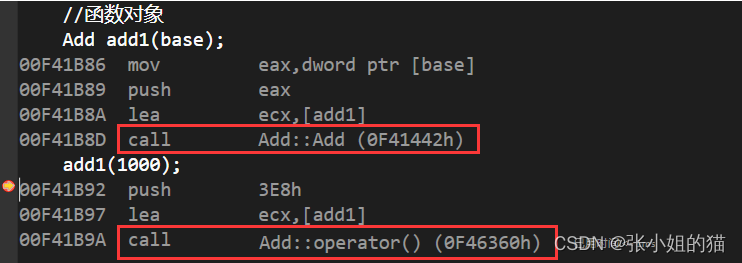 当创建add对象的时候是构造函数,使用add对象的时候就是会调用 Add 类的 () 运算符重载函数