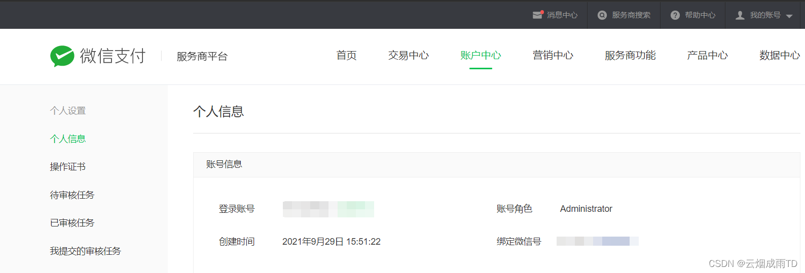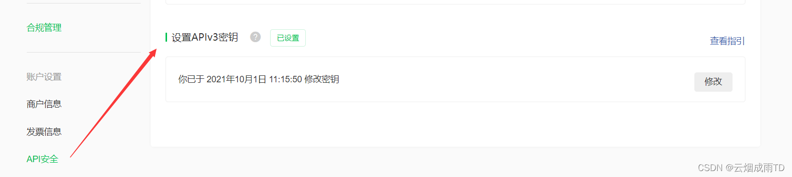 登录微信服务商平台,进入【账户中心 > API安全】目录,设置APIV3密钥。