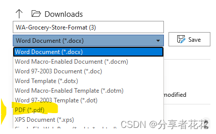 3. 从格式下拉菜单中选择 Microsoft Word。