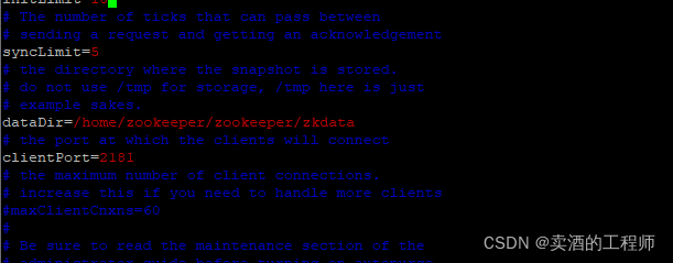 5.clientPort:客户端连接端口客户端连接 Zookeeper 服务器的端口,Zookeeper 会监听这个端口,接受客户端的访问请求。clientPort=2181