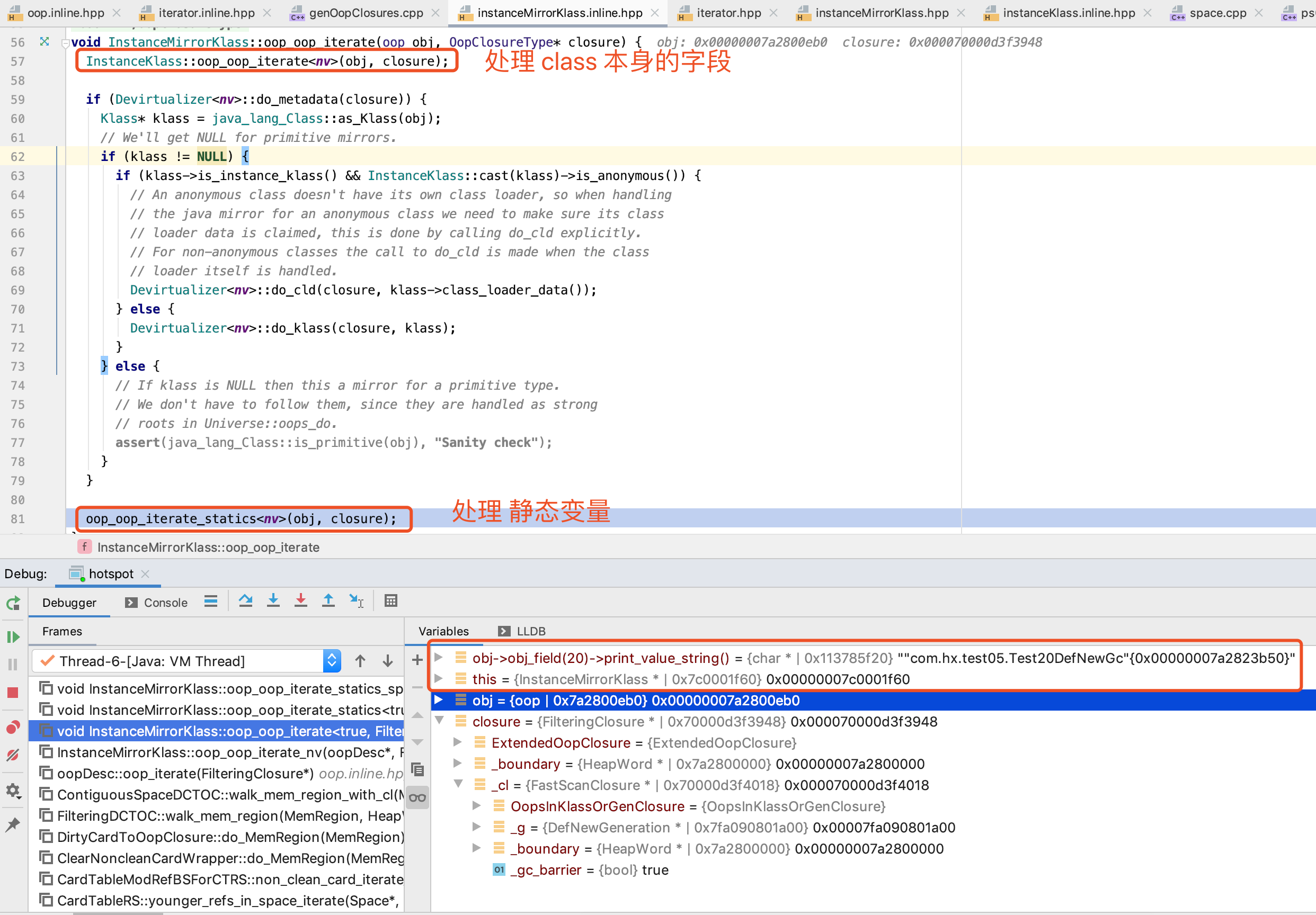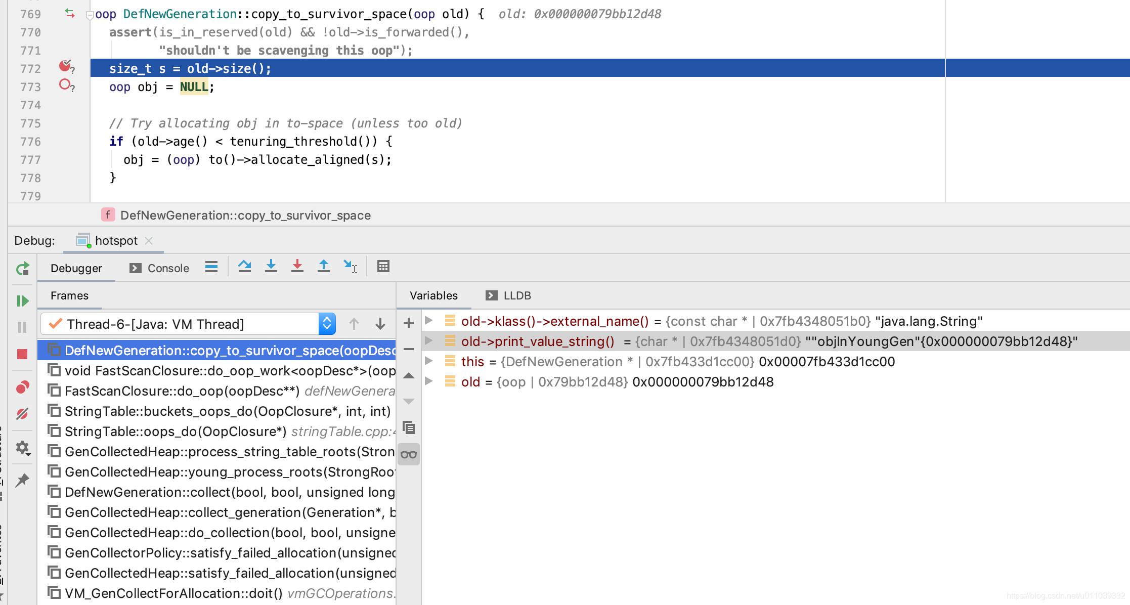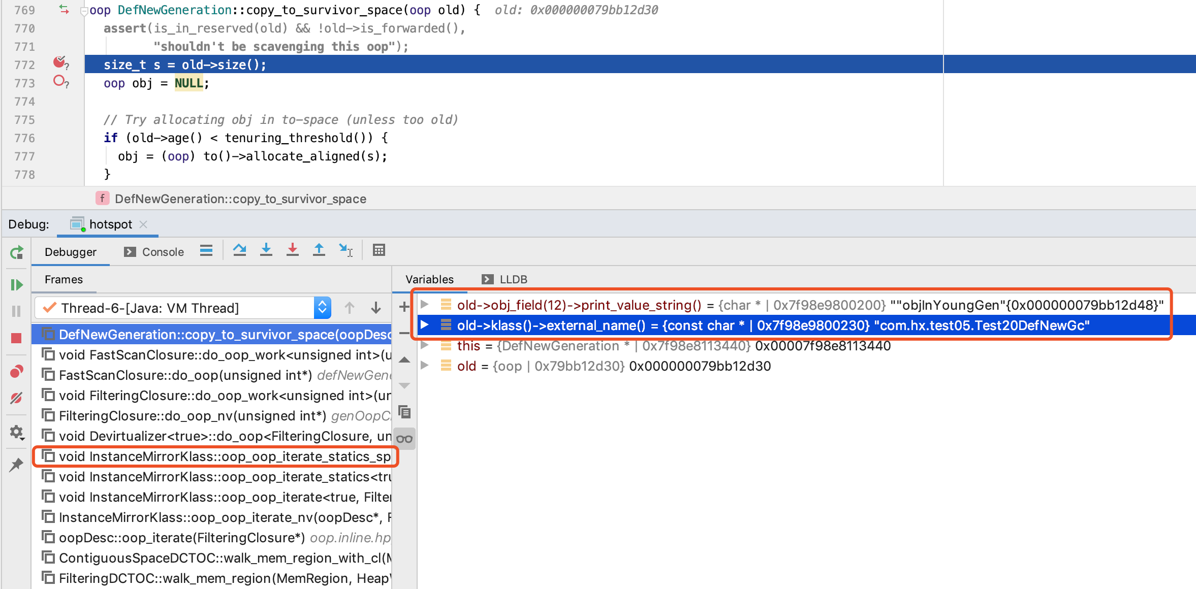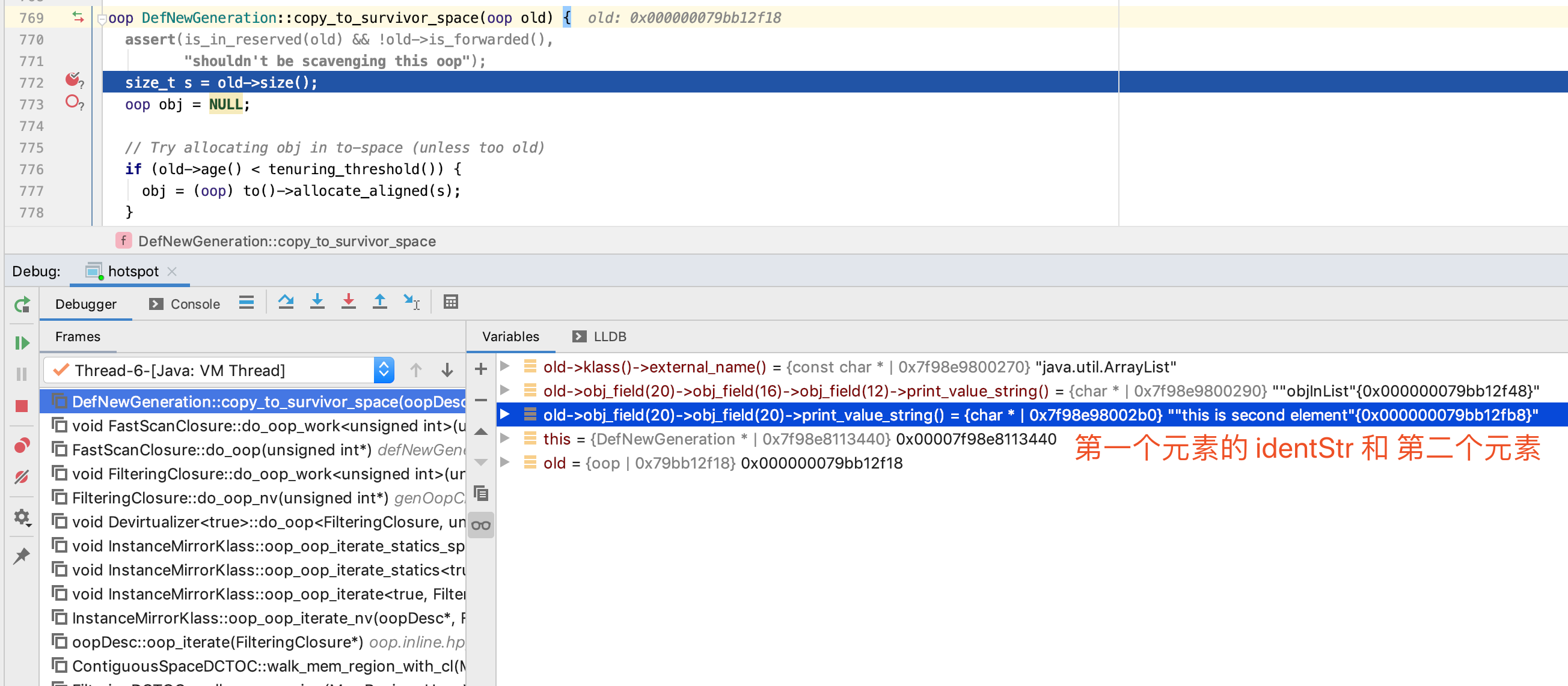 接下来 我们便来 调试一下 各个对象 在这次 minor gc 中的一些细节吧