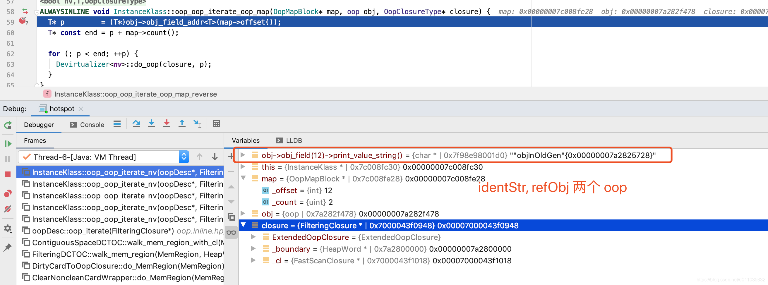 - private 'identStr' 'Ljava/lang/String;' @12 "objInOldGen"{0x00000007a2825728} (f4504ae5 f37625a4)