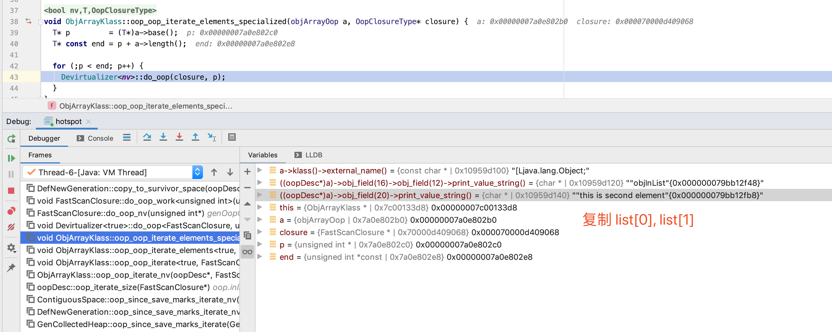 然后 遍历 Test20DefNewGc.list.elementData 的引用列表的时候, 复制 list[0], list[1]