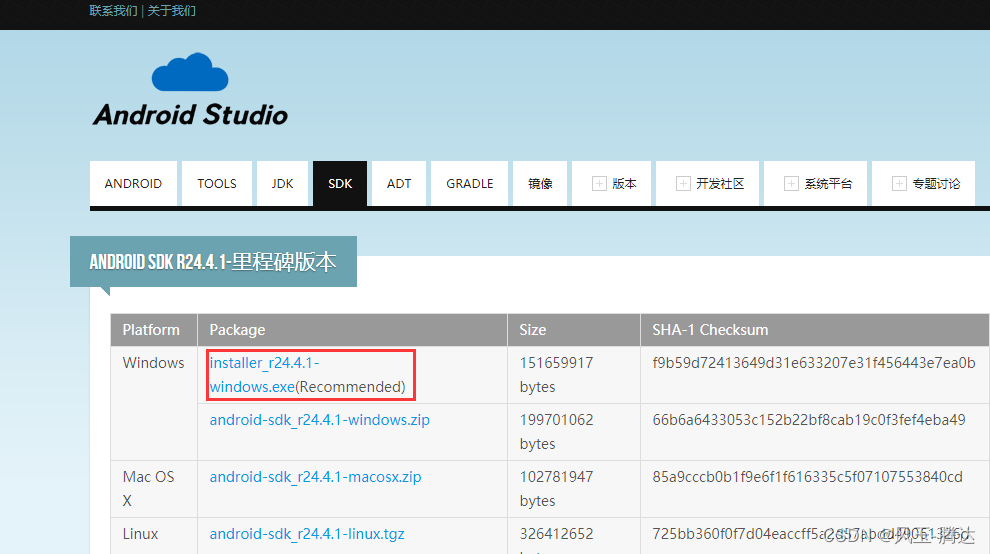 浏览器打开www.android-studio.org,点击下载,然后选择下载windows版本的SDK。