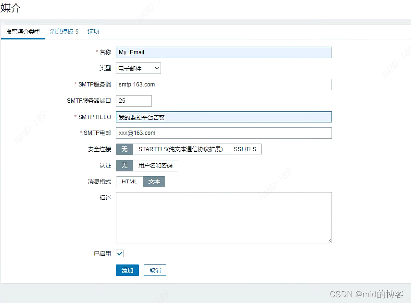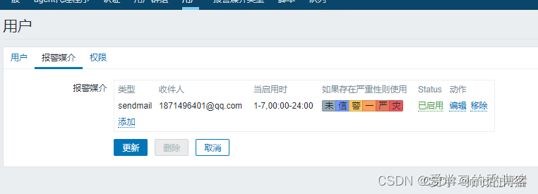 在Zabbix服务端设置邮件报警,当被监控主机宕机或者达到触发器预设值时,会自动发送报警邮件到指定邮箱。