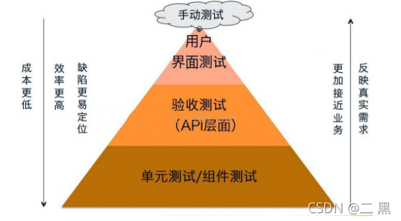 首先,我们先来看看测试金字塔(接口测试是在中间部分,底层是单元测试,最顶端是界面测试)。