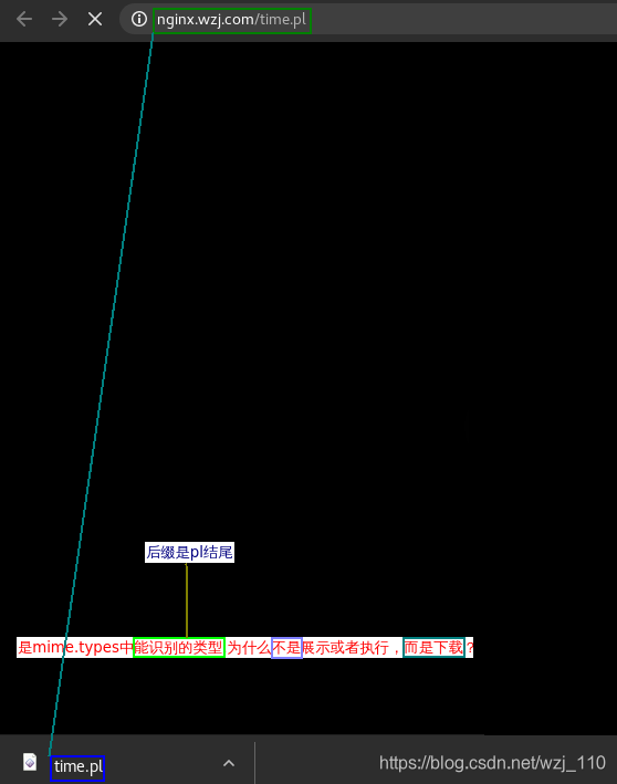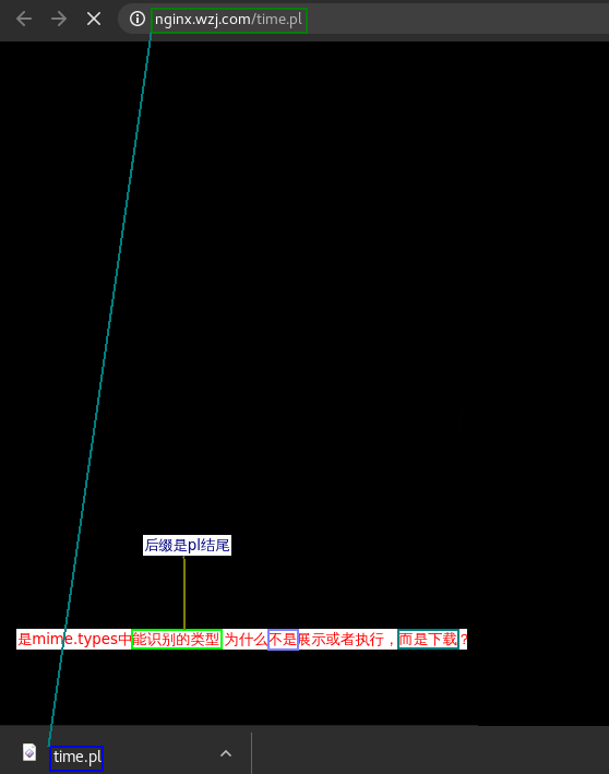 说明: nginx的无法识别'perl结尾的文件',能识别'pl和pm'结尾的文件,'并且'如果安装了对应的模块,并在nginx种做了相应的配置,则会'解析该脚本'后返回内容给客户端