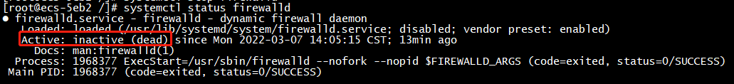 1、通过systemctl status firewalld查看firewalld状态,发现当前是dead状态,即防火墙未开启